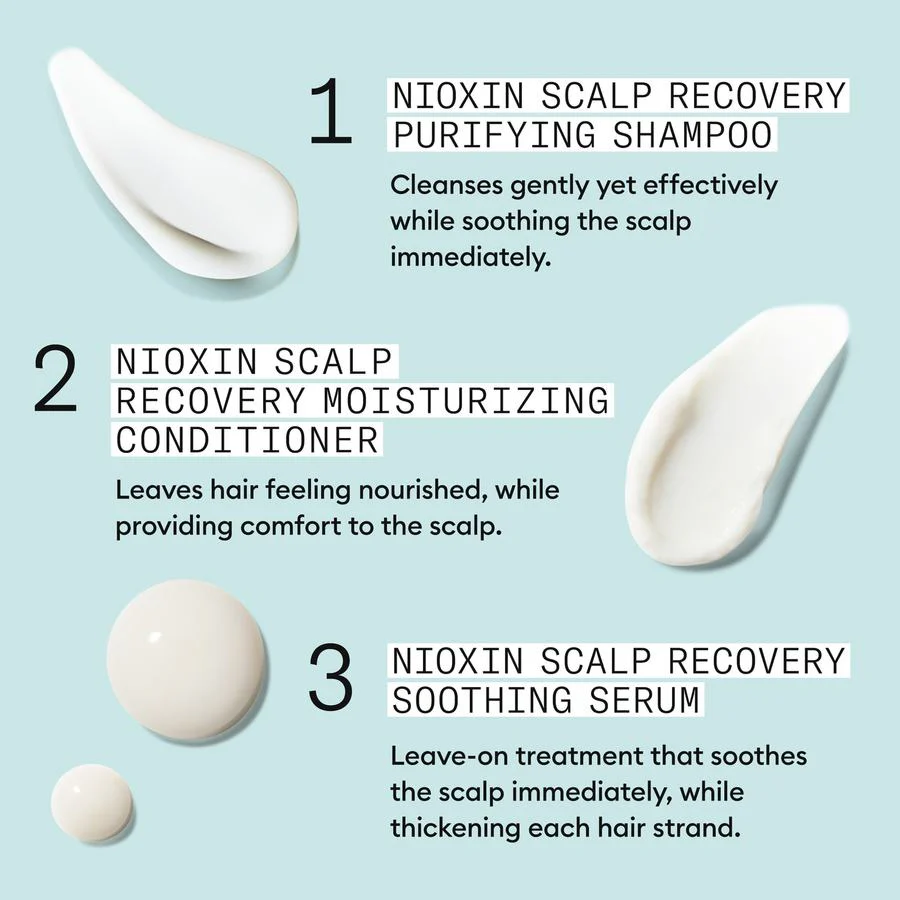 Nioxin Scalp Recovery™ Purifying Cleanser är ett schampo som bevisat hjälper till att förebygga och lindra symptom på seborroisk dermatit, mjäll och andra hårbottenrelaterade problem som fjällning, torrhet och klåda. De dermotologiskt testade ingredienserna med Piroctone Olamine och extrakt av grönt te rengör skonsamt hårbotten, hjälper till att återställa dess naturliga balans och minskar håravfall i samband med klåda.
